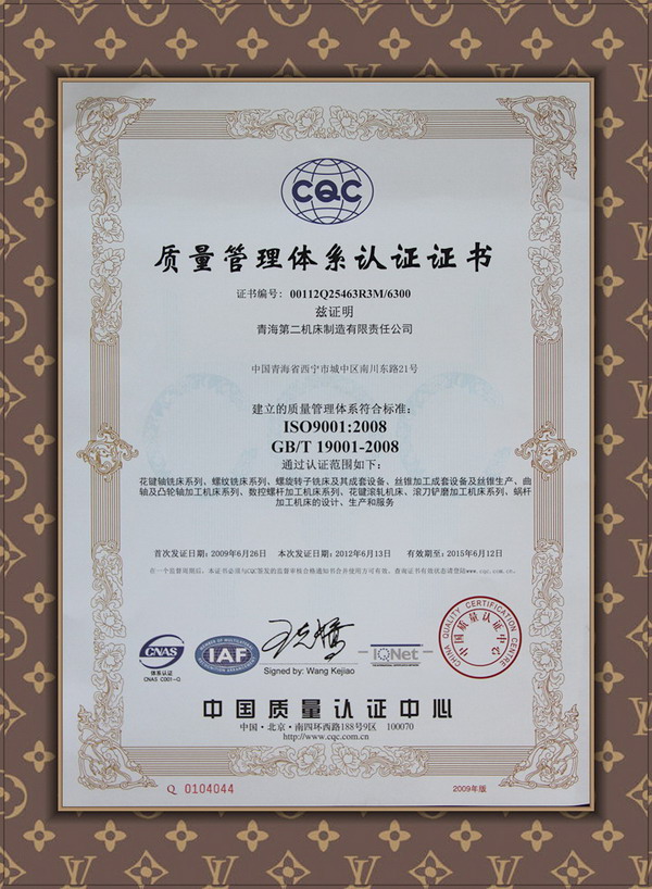 質(zhì)量管理體系認定證證書